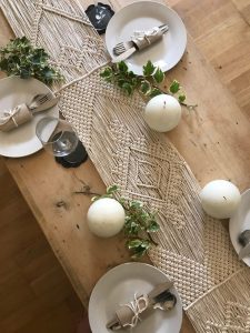 Si quieres darle un toque espectacular a tu celebración atrévete con un camino de mesa de macramé. Puedes variar la longitud, el tipo de nudo, los flecos o incluso añadir algunos abalorios.
